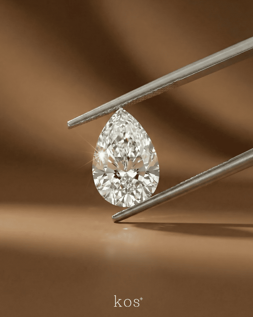 รูปทรง (Shape)ทรงวงรี (Oval Cut) หรือทรงหยดน้ำ (Pear Cut)มีหน้าตัดกว้าง ดูใหญ่กว่าทรงกลมในกะรัตที่เท่ากัน และให้ลุคที่ดูเป็นแฟชั่นนิสต้า