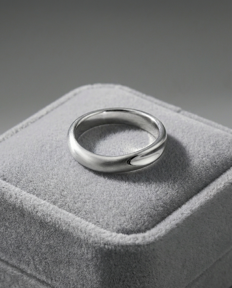 แหวนแต่งงานผู้ชาย วงนี้ดีไซน์มีความโค้ง พร้อมลูกเล่นตัวเรือนที่มีความเงา และความแมท ผสมผสานกัน เรียบหรู เท่ห์ เหมาะแก่สวมใส่ทุกลุคในชีวิตประจำวัน