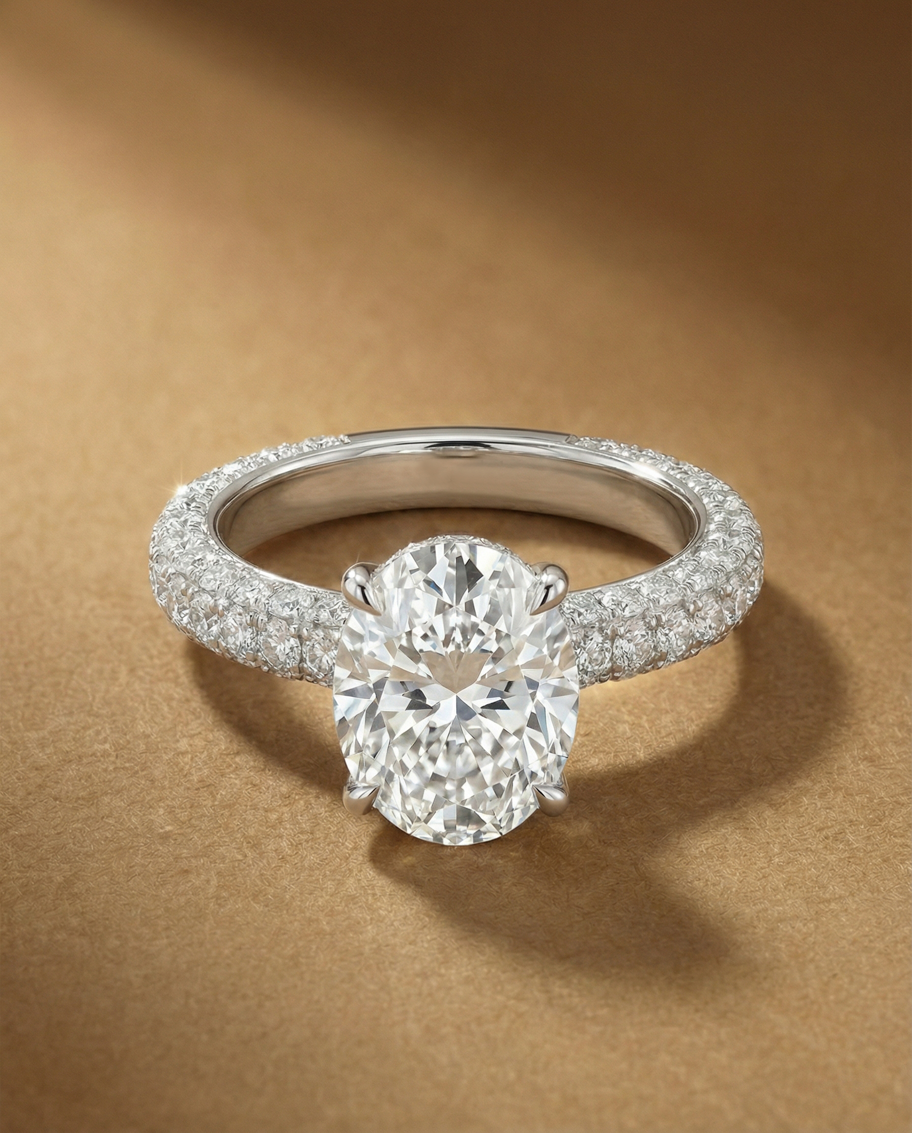แหวนเพชร Oval วงนี้เหมาะสำหรับเป็นแหวนหมั้นหรือแหวนแต่งงานด้วยดีไซน์โดดเด่นและความหมายลึกซึ้ง สื่อถึงความรักที่แท้จริงและโรแมนติก ตัวเรือนผลิตจากทองคำขาว 18K พร้อมฝังเพชรเม็ดเล็กตลอดตัวเรือนและกรอบรอบเม็ดกลาง เพื่อเพิ่มความระยิบระยับทุกมุมมอง