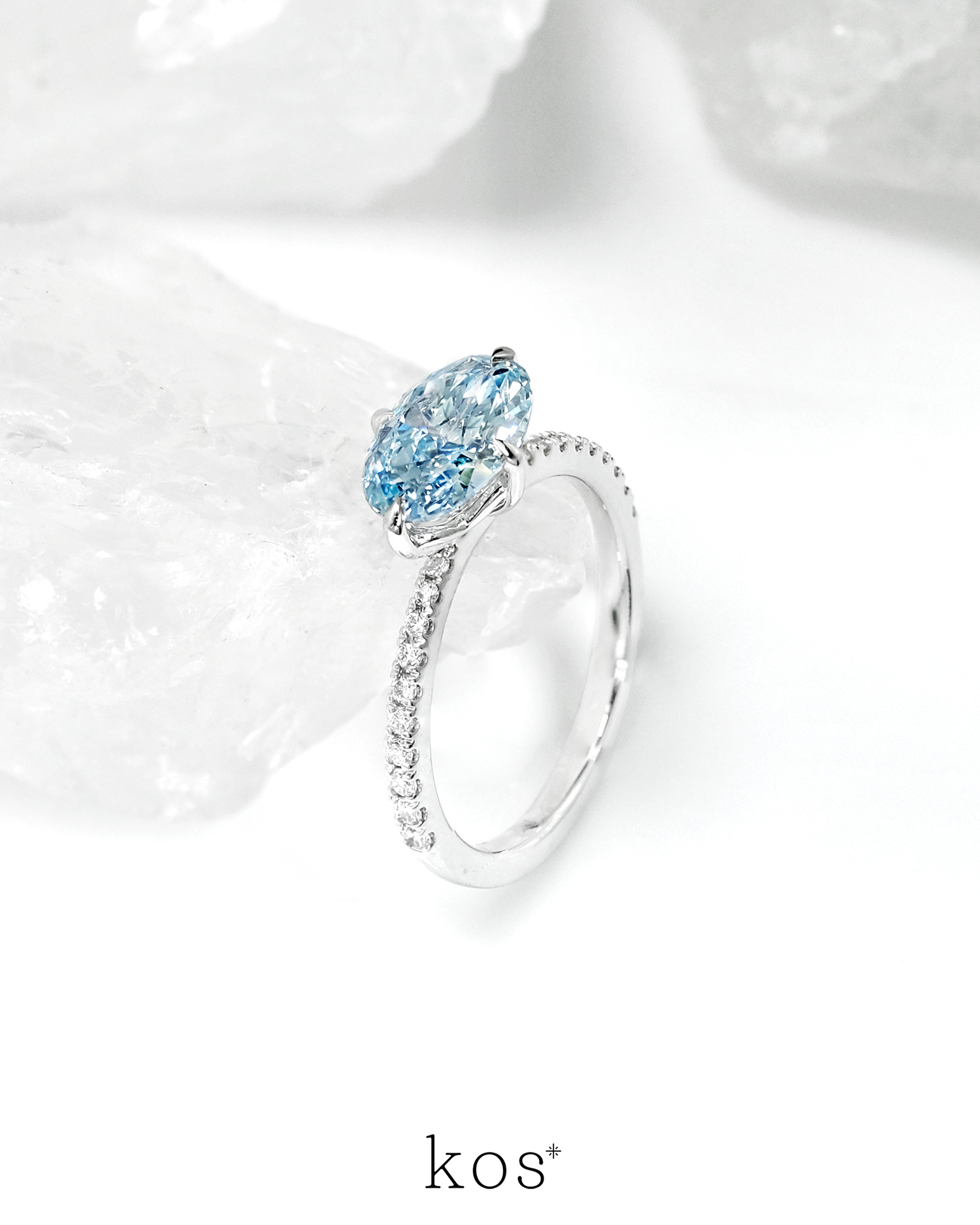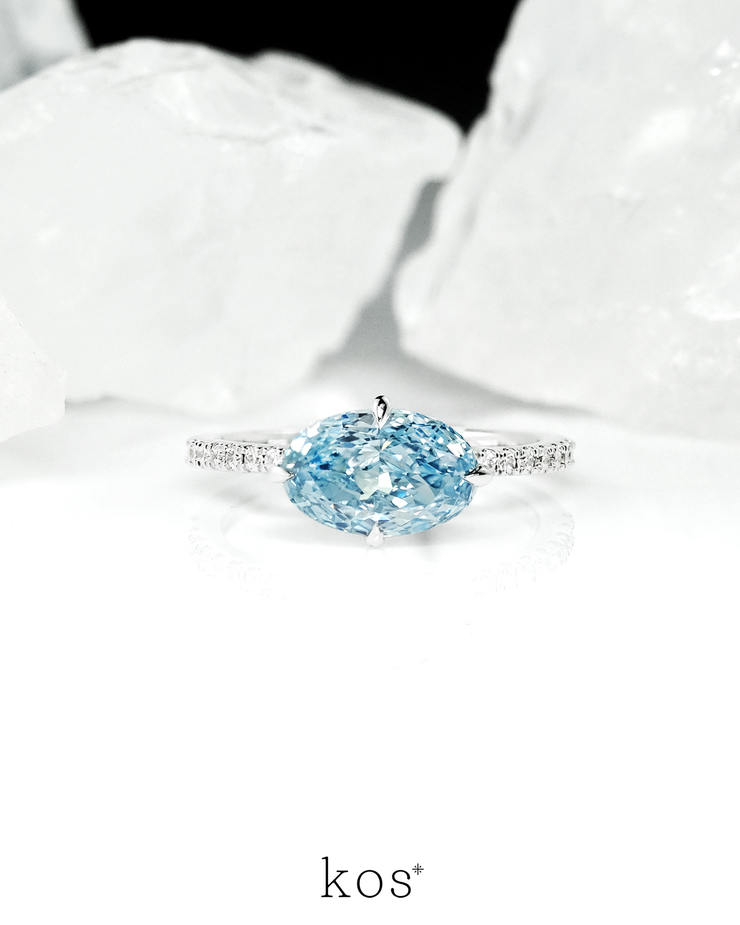 เสน่ห์แห่งเพชรสีฟ้าที่สะท้อนความรักอันบริสุทธิ์ สัมผัสความแตกต่างที่ลงตัวกับแหวนหมั้นดีไซน์ East-West Setting จาก KOS Jewelry ให้ดูทันสมัยและโฉบเฉี่ยวขึ้นด้วยการวางเพชร Oval แนวนอน โดดเด่นด้วยเพชร Blue Oval ที่เปรียบเสมือนตัวแทนของความสงบและความซื่อสัตย์
