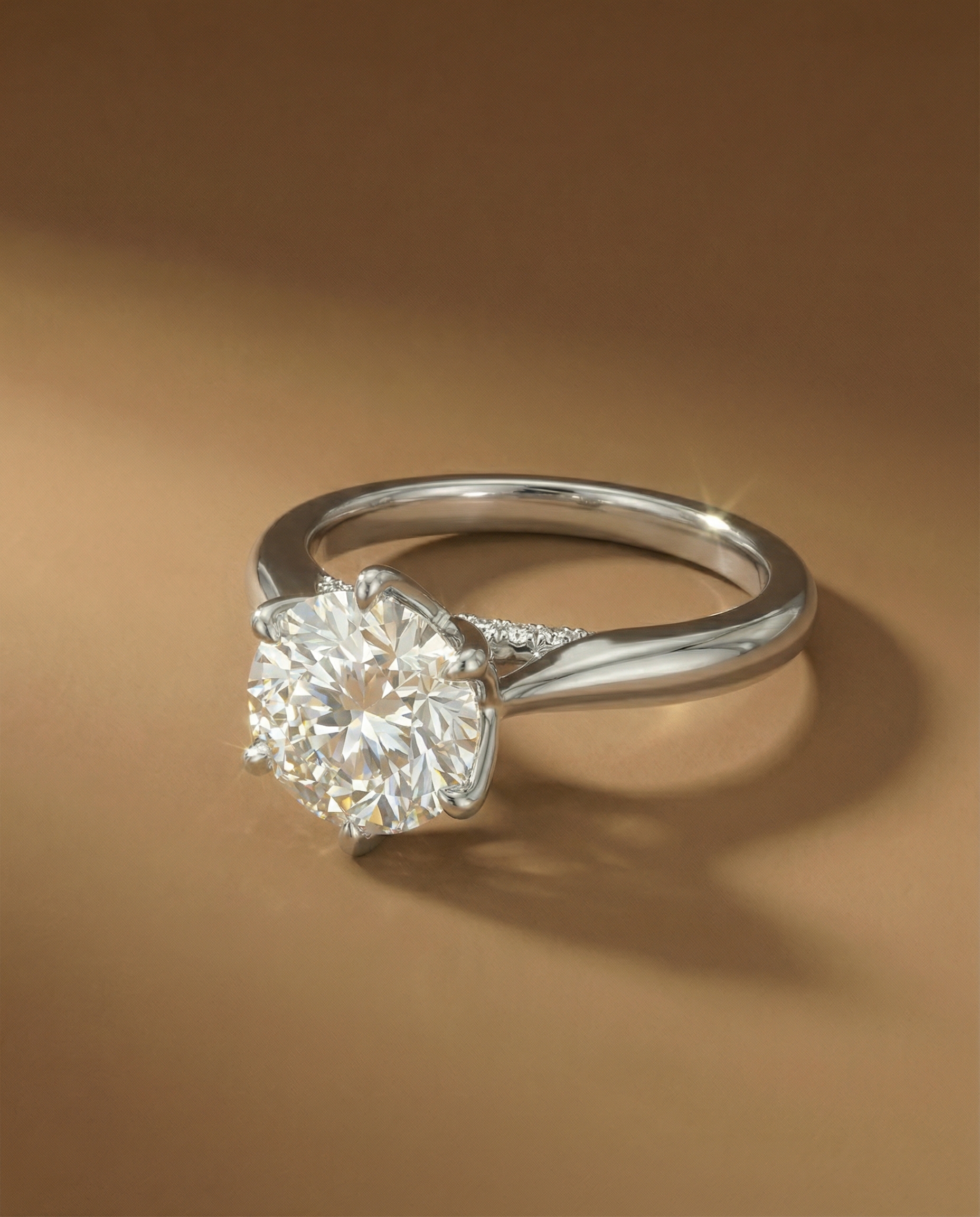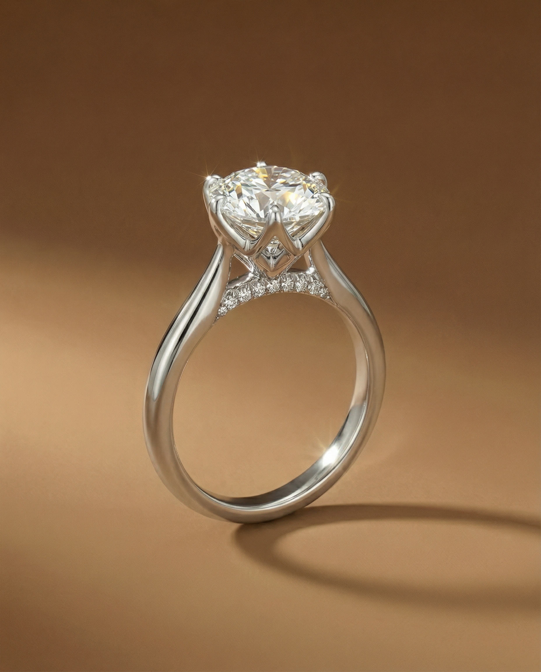 นิยามใหม่ของความคลาสสิก แหวนเพชรชูเม็ดเดี่ยวทรง Round Brilliant Cut ที่โดดเด่นด้วยตัวเรือนก้านเงาโค้งมนทรงพลัง เพิ่มความพิเศษด้วยการฝังเพชรระยิบระยับบริเวณสะพานแหวน (Bridge) มอบประกายไฟที่ซ่อนอยู่เพื่อความสวยงามในทุกองศาการมอง