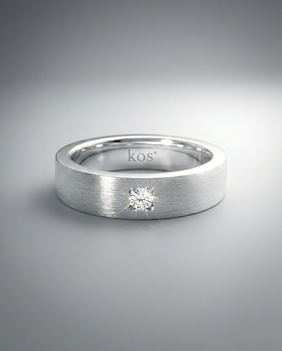 แหวนแต่งงานผู้ชาย ดีไซน์เรียบหรู ฝังเพชรกลม เพื่อเพิ่มความ luxurious ให้กับคุณผู้ชายเมื่อสวมใส่ สวมใส่ง่ายด้วยทรง Comfort Fit ทำให้เหมาะสำหรับการใส่ในชีวิตประจำวัน