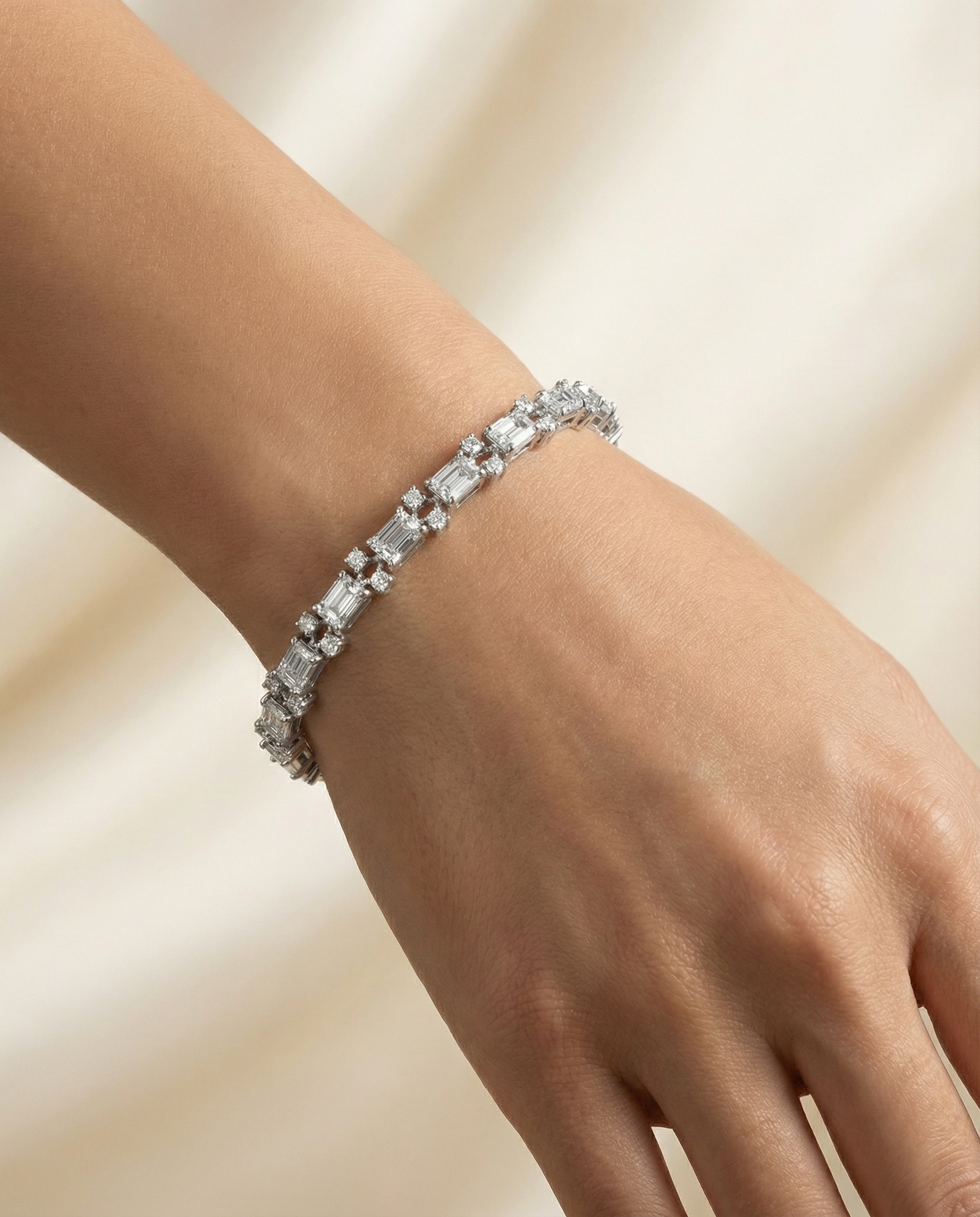 ยกระดับความหรูหราเหนือกาลเวลา ด้วยสร้อยข้อมือเพชรดีไซน์พิเศษที่ผสมผสานความสง่างามของ เพชรทรงสี่เหลี่ยม Emerald เข้ากับความระยิบระยับของ เพชรกลมอย่างลงตัว สร้อยข้อมือเส้นนี้ถูกออกแบบมาเพื่อสะท้อนรสนิยมที่ทันสมัย ตัวเรือนผลิตจากวัสดุพรีเมียม ประณีตทุกจุดเชื่อมต่อ มอบสัมผัสที่เรียบเนียนไปกับข้อมือ เหมาะสำหรับเป็นของขวัญชิ้นพิเศษ หรือสวมใส่เพื่อเพิ่มความมั่นใจในงานสำคัญ