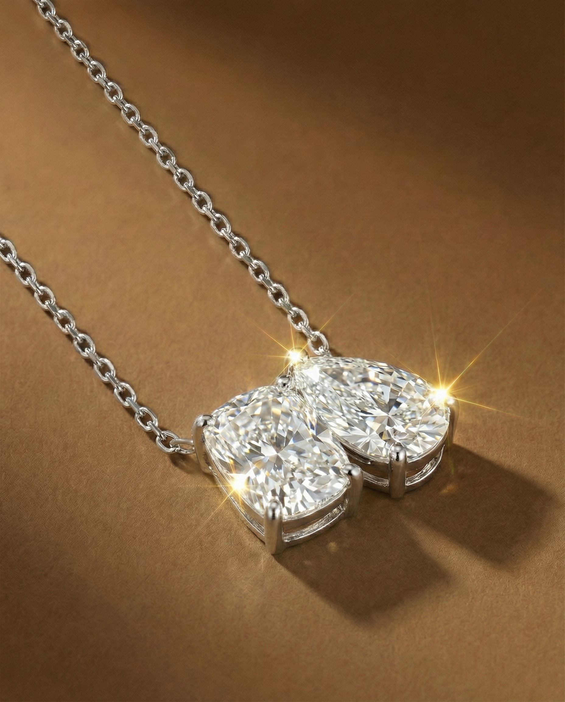 สร้อยคอเพชร The Duality เส้นนี้เป็นตัวแทนของความลงตัวที่แตกต่างอย่างมีสไตล์ ด้วยการจับคู่เพชรแท้เจียระไนสองรูปทรงที่ไม่เหมือนใครอย่าง Pear Cut ที่อ่อนช้อยและ Radiant Cut ที่คมชัดมีเสน่ห์ การผสมผสานที่สร้างความสมดุลได้อย่างลงตัวนี้จะช่วยเสริมความโดดเด่นและบ่งบอกถึงรสนิยมอันล้ำค่าของคุณ
