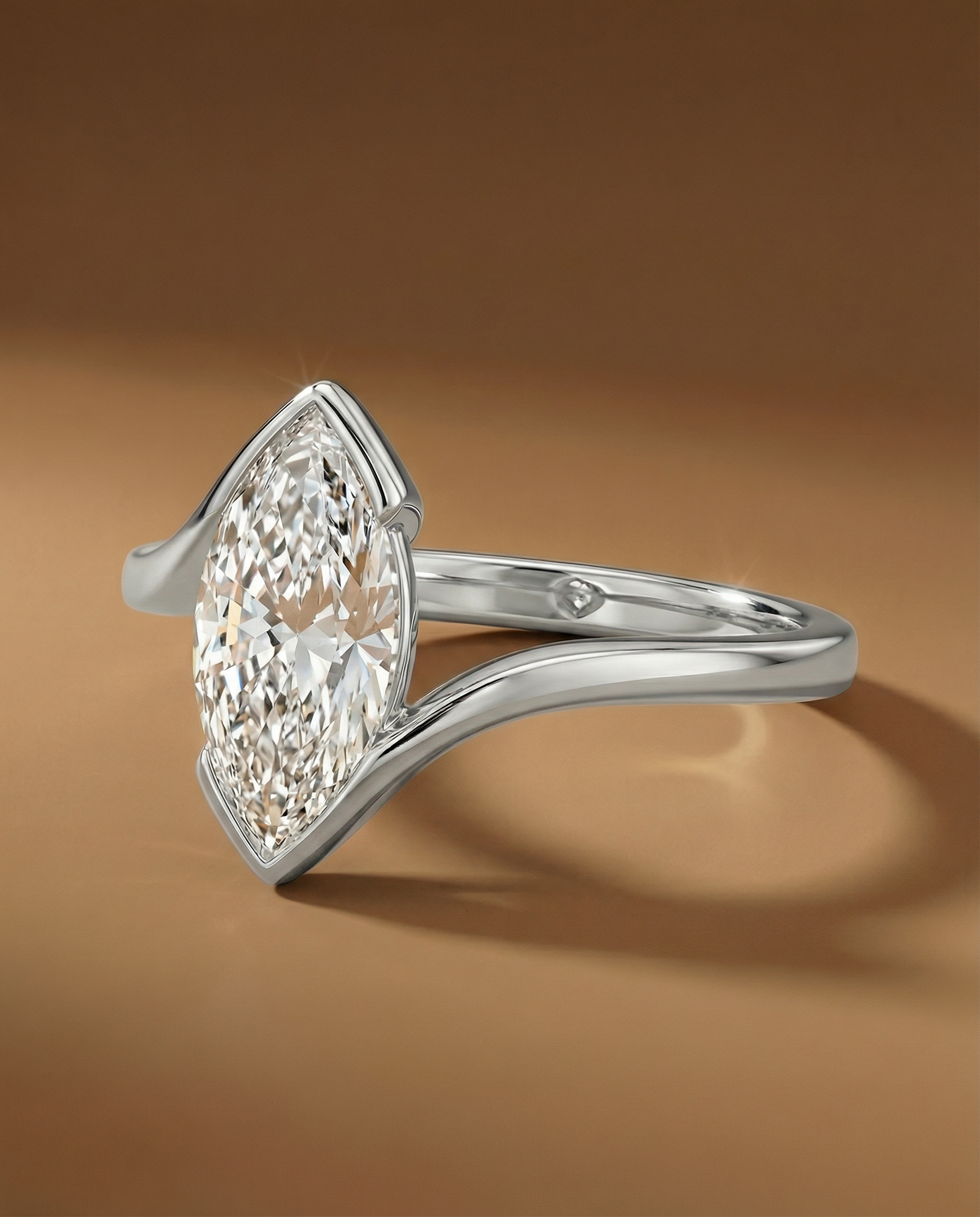 สัมผัสความหรูหราที่แตกต่าง ด้วยแหวนเพชรน้ำงามทรง Marquise Cut เอกลักษณ์แห่งความสง่างามที่ช่วยพรางตาให้ประดับแล้วนิ้วมือดูเรียวยาว ตัวเรือนถูกออกแบบมาในสไตล์ Bypass Design ที่มีความโค้งมนโอบล้อมเม็ดกลางอย่างอ่อนโยน ผสานความทันสมัยและความคลาสสิกไว้อย่างลงตัว