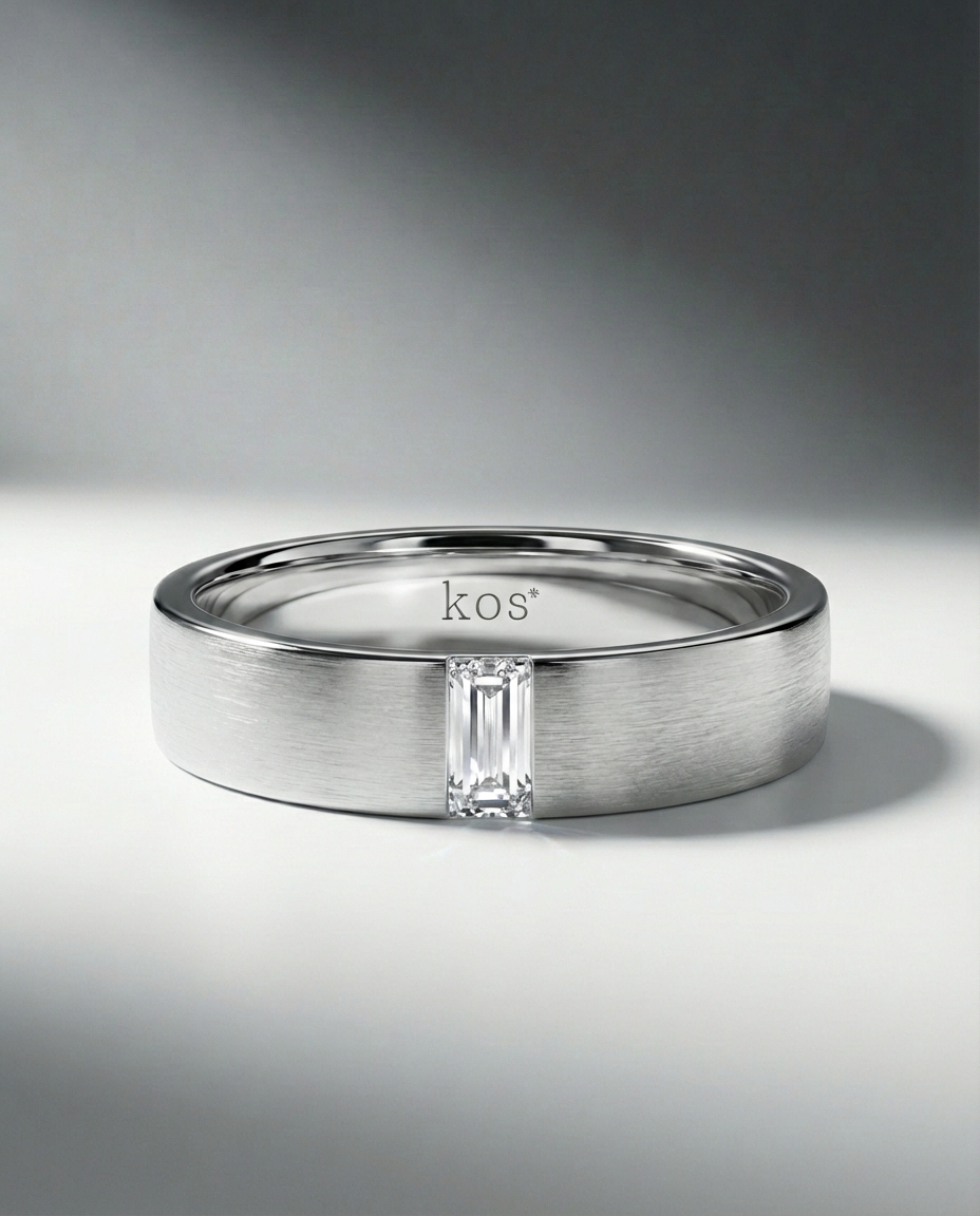แหวนแต่งงานชาย จาก “Gentleman Collection” เพชร Baguette Cut ที่ให้ Masculine Look สำหรับคุณผู้ชาย สามารถปรับสปคเพชรได้ตามความต้องการ