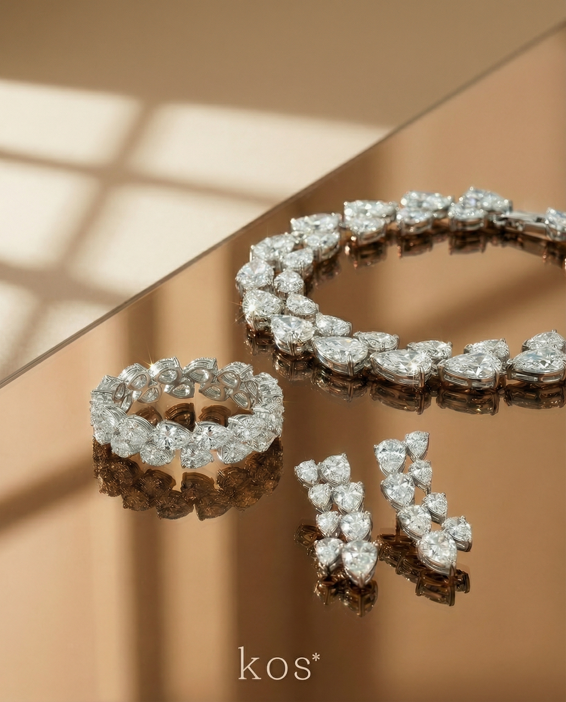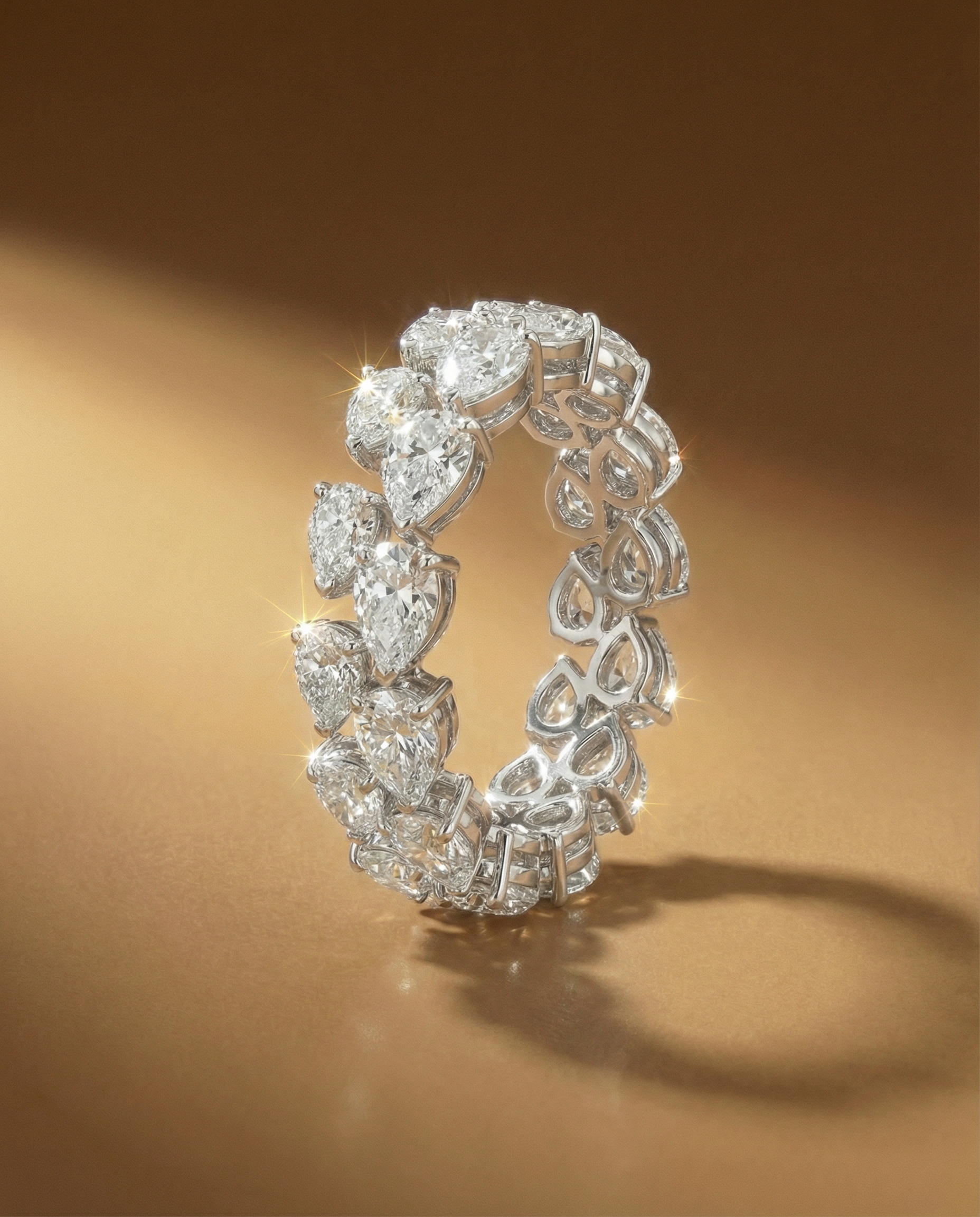 สะกดทุกสายตาด้วยประกายระยิบระยับอันเจิดจรัส แหวนเพชรดีไซน์พิเศษที่นำเอาเพชรเจียระไนรูปหยดน้ำ มาเรียงร้อยต่อกันถึงสองแถว ตัวเรือนทองคำขาวรังสรรค์อย่างประณีต เพื่อมอบสัมผัสที่เรียบเนียนและความหรูหราสูงสุด เหมาะสำหรับเป็นของขวัญชิ้นพิเศษหรือเครื่องประดับสำหรับค่ำคืนสำคัญ