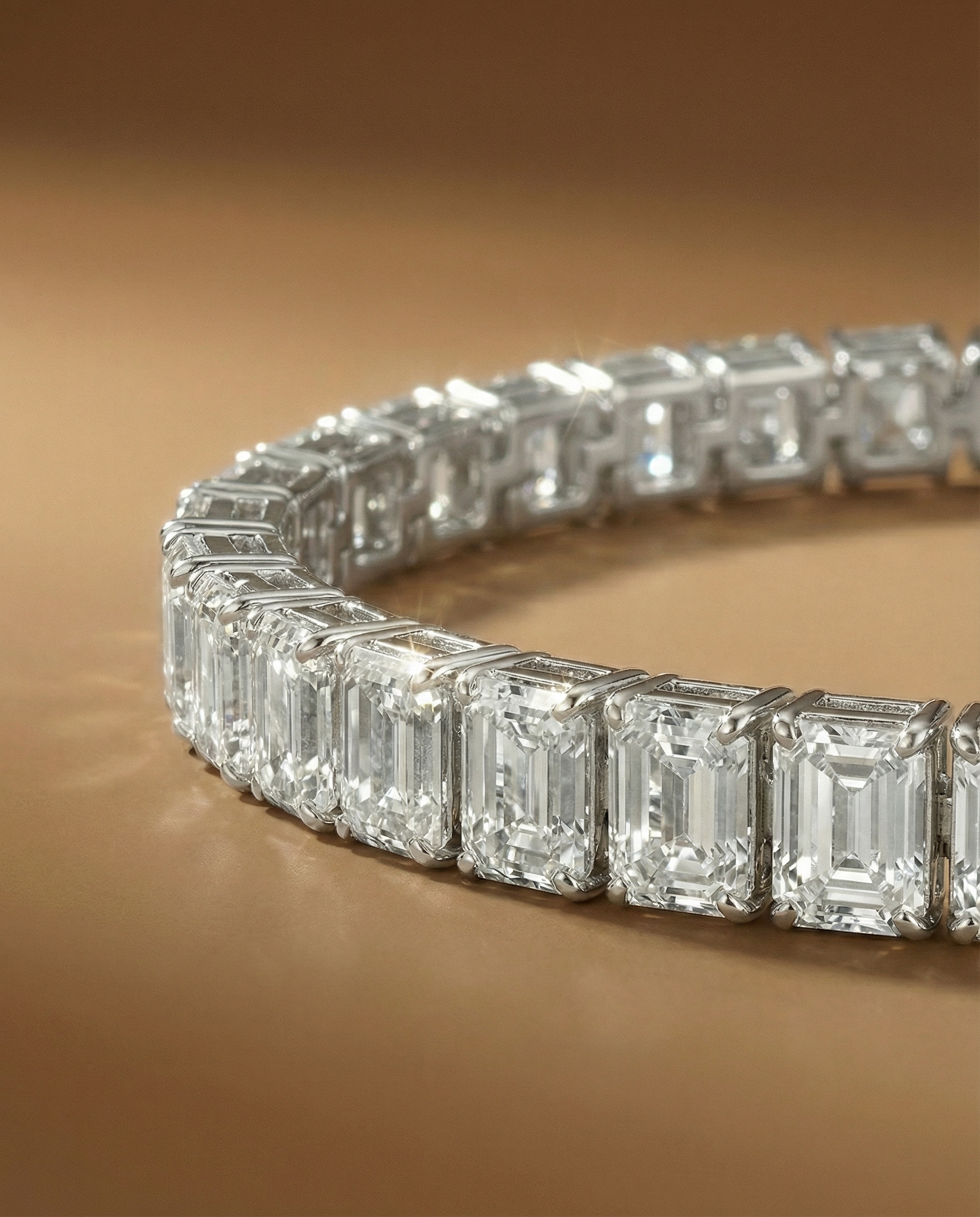 ยกระดับความหรูหราให้กับข้อมือของคุณด้วยสร้อยข้อมือเทนนิสที่คัดสรรเพชรทรง Emerald-cut น้ำงามที่สุด เรียงร้อยต่อกันอย่างประณีต ดีไซน์นี้เน้นความเรียบเท่แต่แฝงไปด้วยพลัง ด้วยหน้าเพชรที่กว้างสะท้อนแสงแบบ “Hall of Mirrors” อันเป็นเอกลักษณ์ ไม่ว่าจะเป็นงานเลี้ยงสำคัญหรือการสวมใส่ในวันพิเศษ สร้อยข้อมือเส้นนี้คือสัญลักษณ์ของรสนิยมที่เหนือระดับ