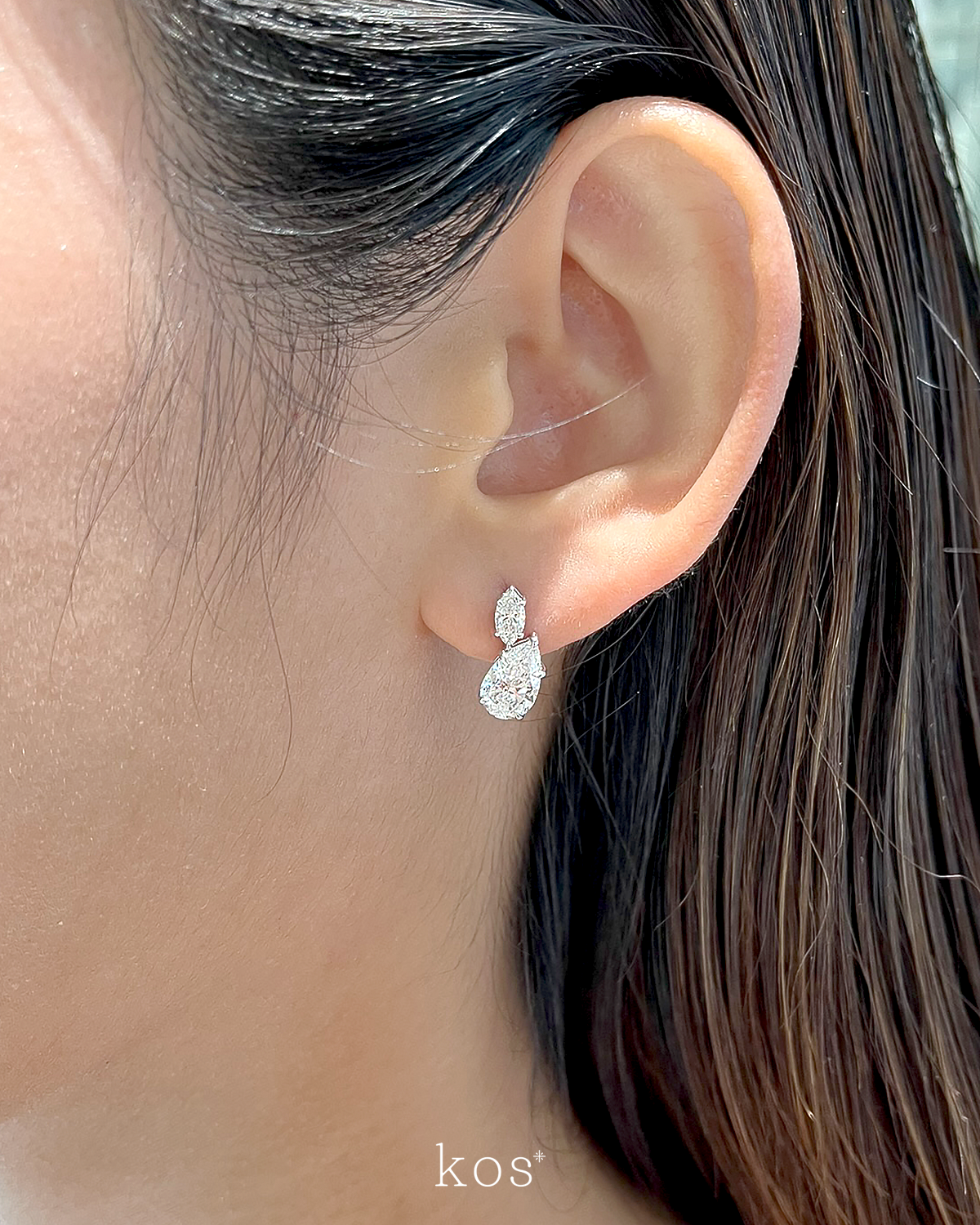 ต่างหูเพชร Petra Stud Earrings คู่นี้ดีไซน์โดยใช้ เพชรหยดน้ำ และเพชร Marquise