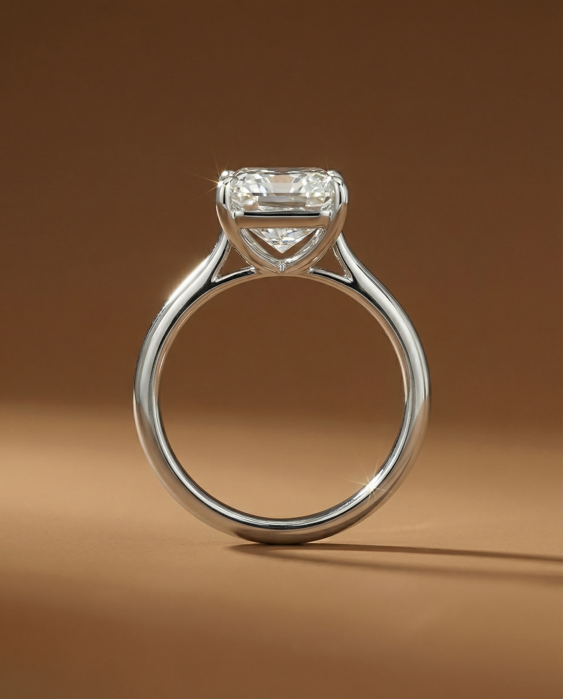 แหวนเพชร Radiant Solitaire บนตัวเรือน Classic แบบ Cathedral Setting เน้นชูเพชรให้โดดเด่น สวย เรียบหรู เสริมลุคให้คุณผู้หญิงเปล่งประกาย อย่างไม่มีที่ติ