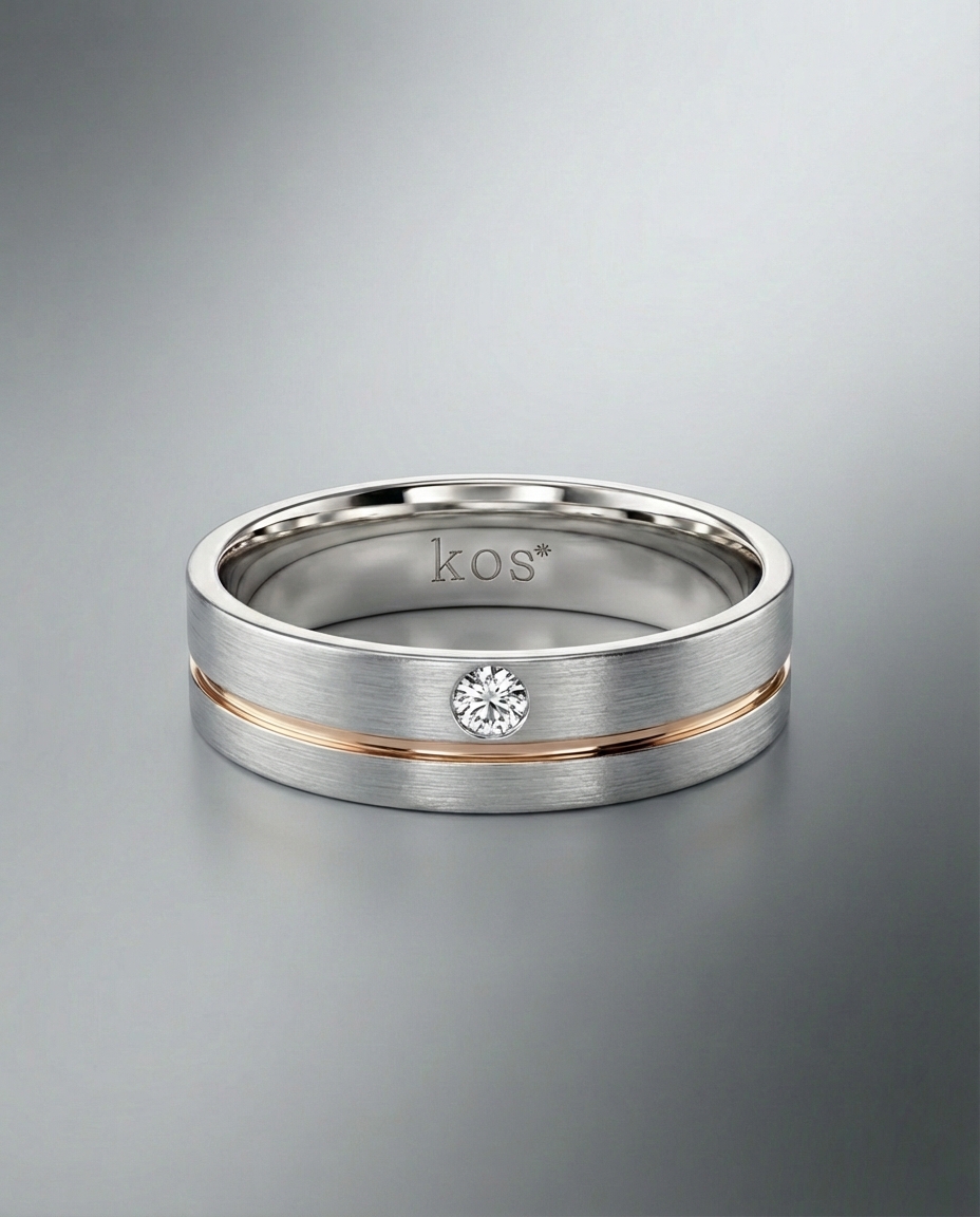 สะท้อนตัวตนที่สุขุมและมีสไตล์ด้วย แหวนชายดีไซน์ร่วมสมัย ที่ออกแบบมาเพื่อผู้ชายยุคใหม่โดยเฉพาะ ดีไซน์ตัดสลับด้วยเส้นสายสี Rose Gold บริเวณกึ่งกลาง เพิ่มมิติและความโดดเด่นอย่างมีชั้นเชิง