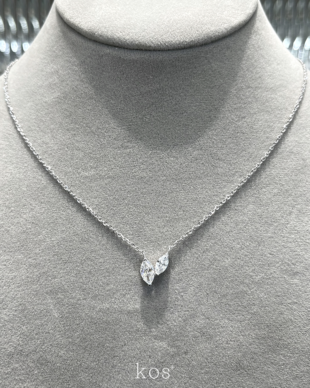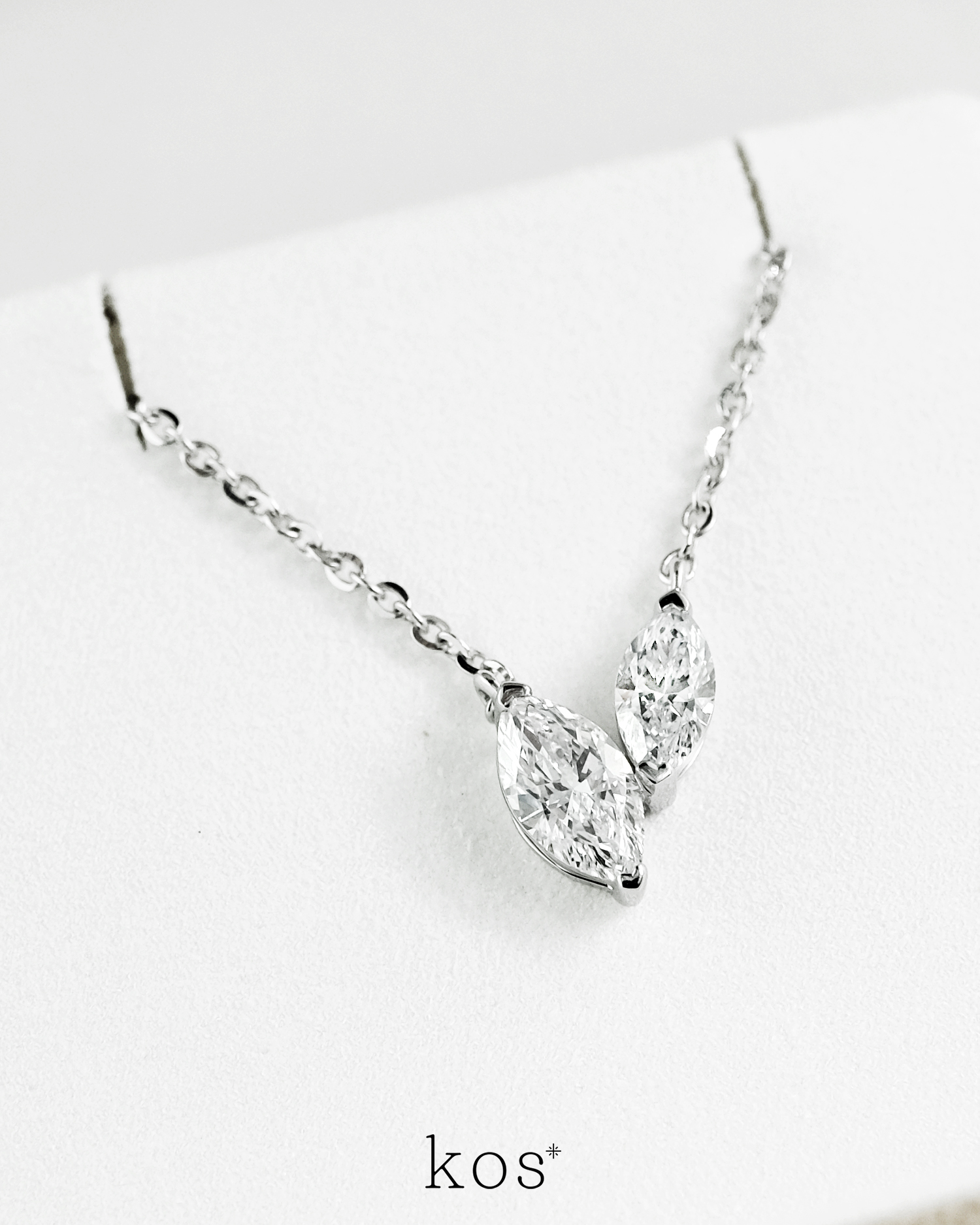 สร้อยคอจี้เพชร Marquise Kiss เส้นนี้คือการผสมผสานความคลาสสิกเข้ากับความทันสมัยได้อย่างลงตัว ด้วยเพชรทรง Marquise สองเม็ด