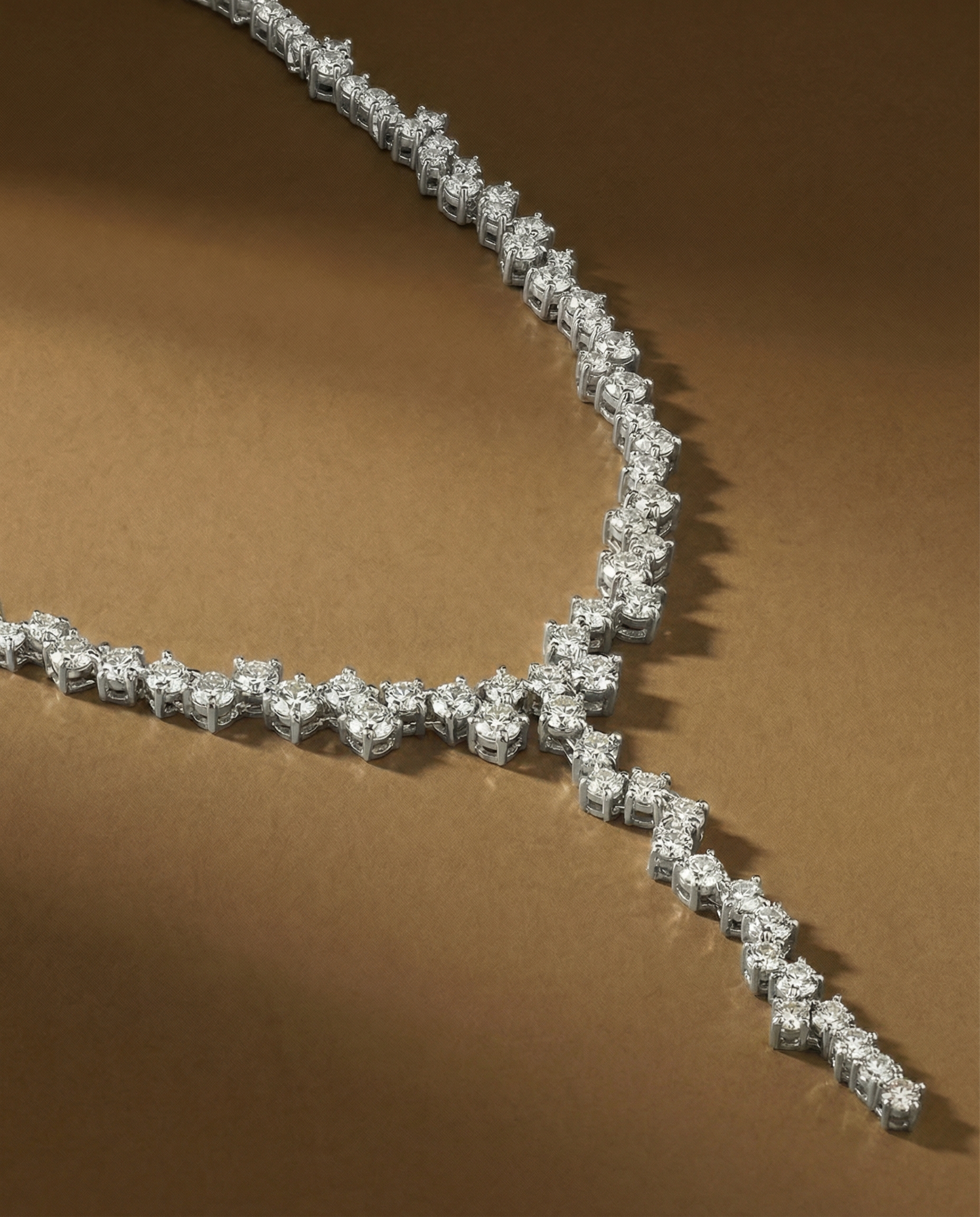 ยกระดับความหรูหราสู่มิติใหม่ด้วย The Midnight Aurora Necklace สร้อยคอเพชรแท้ดีไซน์ Y-Necklace ที่สะท้อนนิยามของ “Modern Royalty” ได้อย่างสมบูรณ์แบบ ตัวเรือนโดดเด่นด้วยการเรียงร้อยเพชรน้ำงามในรูปแบบซิกแซกที่พริ้วไหว ช่วยเน้นช่วงลำคอให้ดูระหงและเสริมบุคลิกให้ดูสง่าผ่าเผยในทุกโอกาสสำคัญ